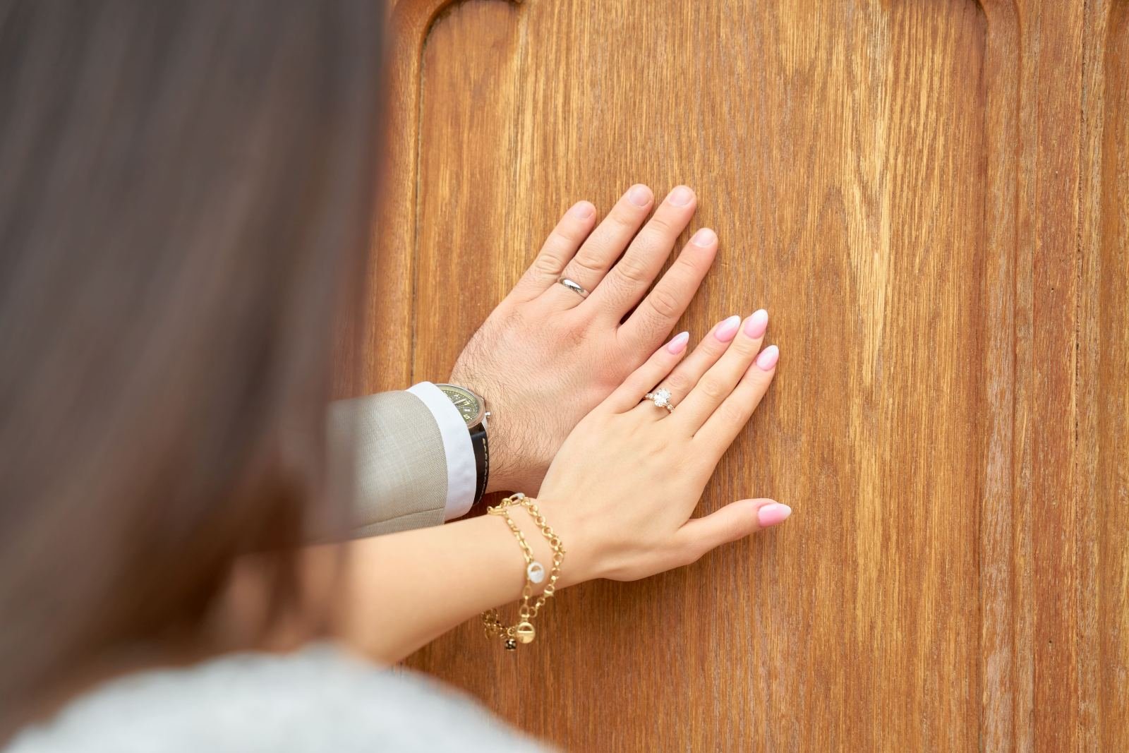 Moving forward, they embrace the joy of the present and the excitement of the future. The simple act of holding each other close in nature speaks volumes about their connection. The story closes with a final, symbolic gesture—their hands, now adorned with rings, touch the wooden surface, sealing their eternal promise.