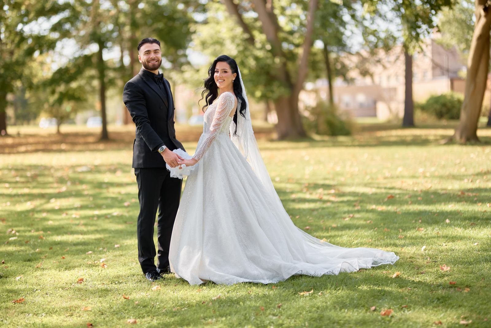On a calm December morning in London, Ontario, Francisca stood gracefully on the staircase, taking in a quiet breath before the day unfolded. With soft light touching her dress and delicate flowers around her, she embraced the stillness—moments before her love story with Ali stepped into its most beautiful chapter.