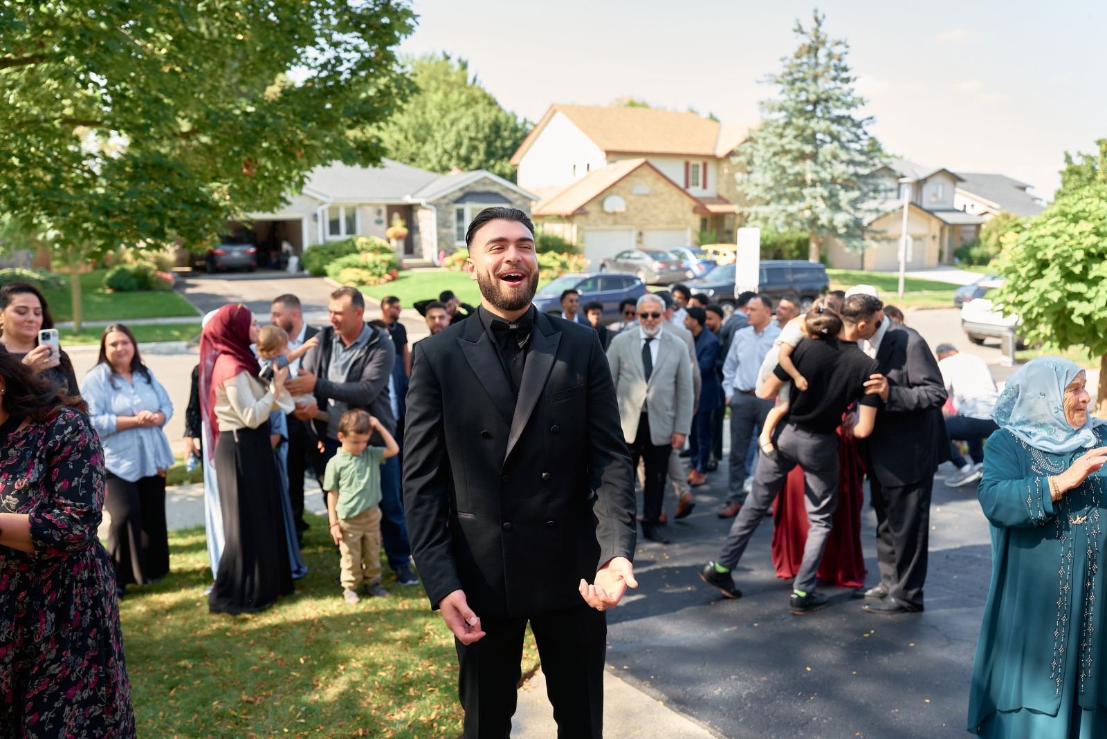 Outside, Ali arrived surrounded by family, warm smiles, and heartfelt excitement. The atmosphere buzzed with joy as relatives gathered to welcome him. Every step brought him closer to the moment that would shape the rest of his life—the moment he would finally see his bride.